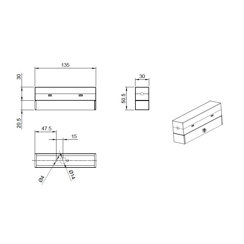 50cm track for 2-phase track lighting, gray 1 meter track for 2-phase track lighting, gray 1 meter track for 2-phase track lighting, black Gray connector 2 phase track lighting- W: 3 cm, H: 2 cm