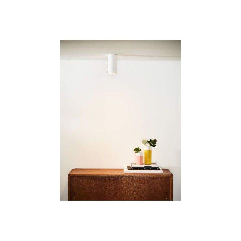 The white ceiling spotlight Gipsy has the style modern and is made of plastic. This modern ceiling spotlight has a GU10 lamp holder and is supplied without a light source. The lamp can accommodate light sources with a maximum power of 35 watts.