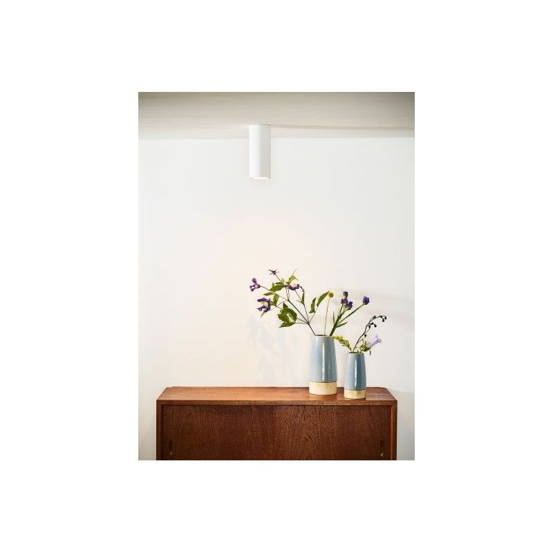 The white ceiling spotlight Gipsy has the style modern and is made of plastic. This modern ceiling spotlight has a GU10 lamp holder and is supplied without a light source. The lamp can accommodate light sources with a maximum power of 35 watts.