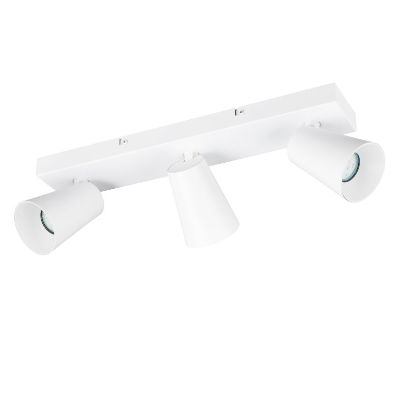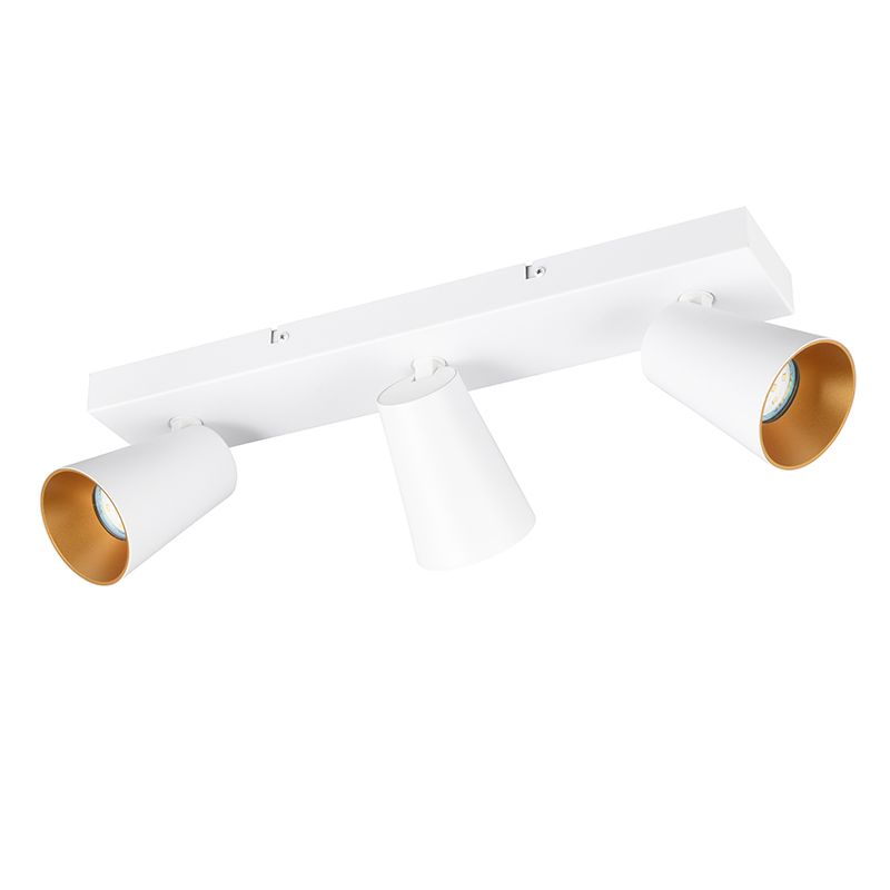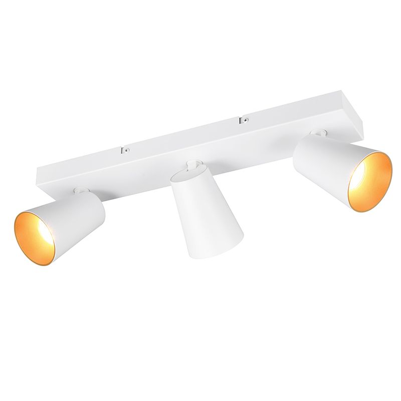 The white ceiling spotlight Rawien has the style modern and is made of metal. This modern ceiling spotlight has 3 GU10 lamp holders and is supplied excluding 3 light sources. The lamp can accommodate light sources with a maximum power of 10 watts per bulb.