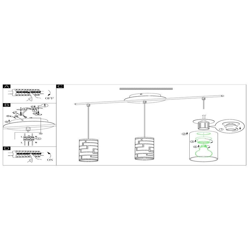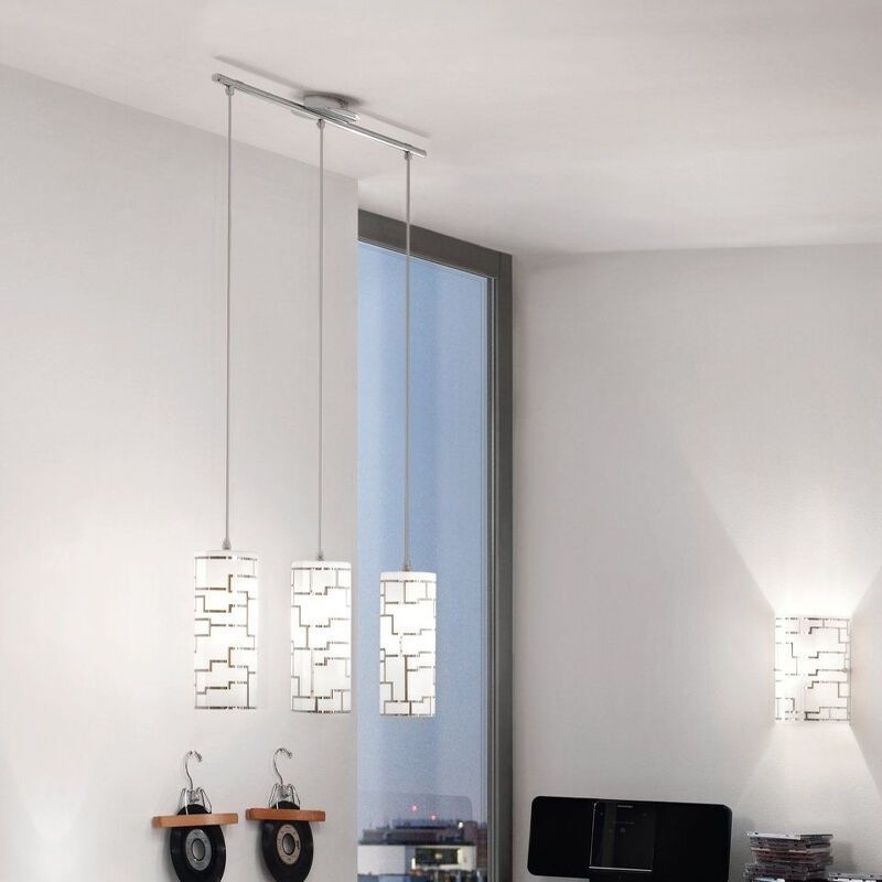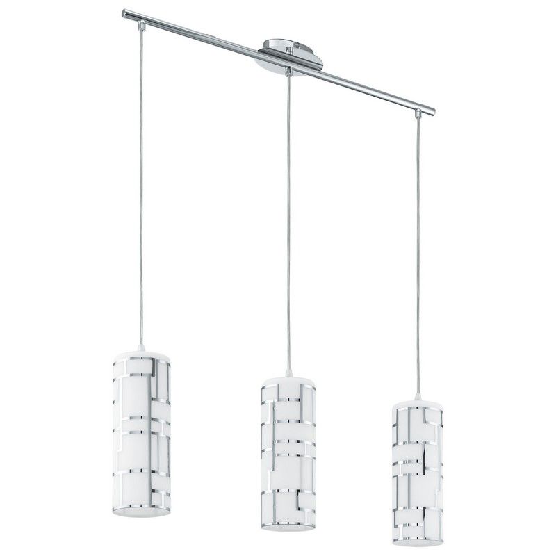 Product information Maximum wattage 60 Supply voltage 220-240V Number of lights 3 Lampholder type E27 Product information Light included No Width in cm 10.5 Weight in KG 2.9 Height in cm 110 Length in cm 72 Dimmable Yes (not included) Warranty 2 years IP classification IP20 (dustproof) Colour Chrome, White Material Glass Area Dining table Style Modern Article number Q16939 - Home