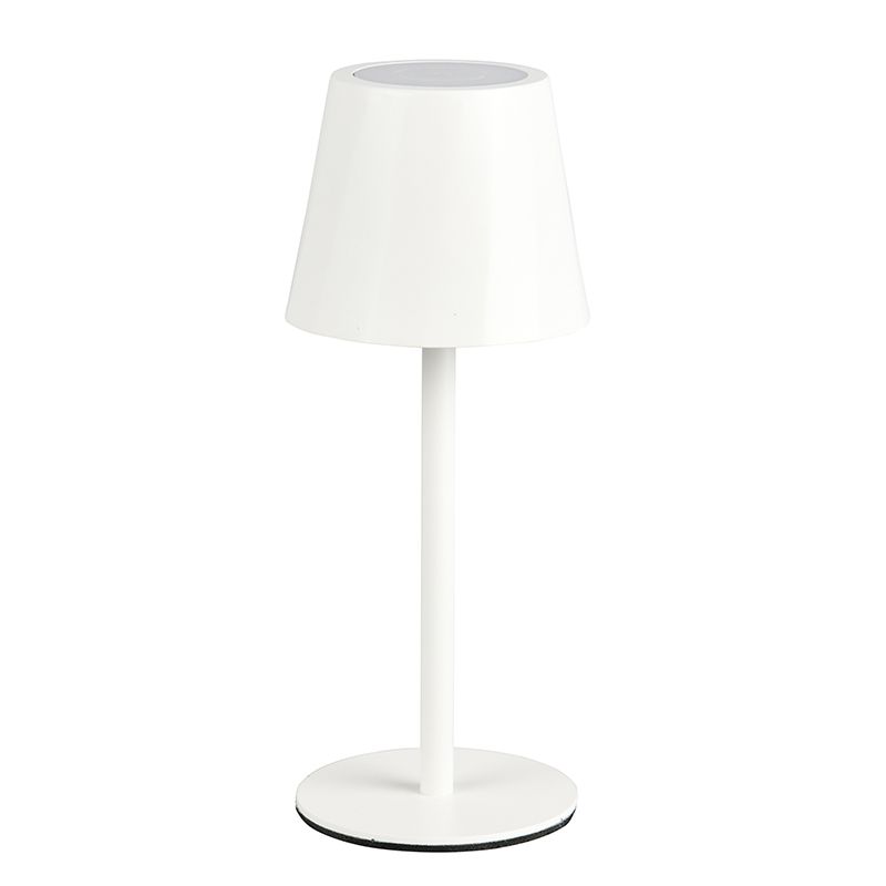 Product information Maximum wattage 1.6 Supply voltage Battery powered Number of lights 1 Number of Lumens 160 Product information Light colour Adjustable warm to cold white Powerfactor 0.8 Lampholder type LED integrated Lightsource type included Integrated LED Expected burning hours 20000 Light included Yes, integrated Width in cm 8 Diameter in cm 8 Height in cm 21 Dimmable Yes (included) Warranty 2 years IP classification IP20 (dustproof) Colour White Material Metal With switch Yes Style Basic Switch type On/off touch switch on the cord Article number Q10353 - Home
