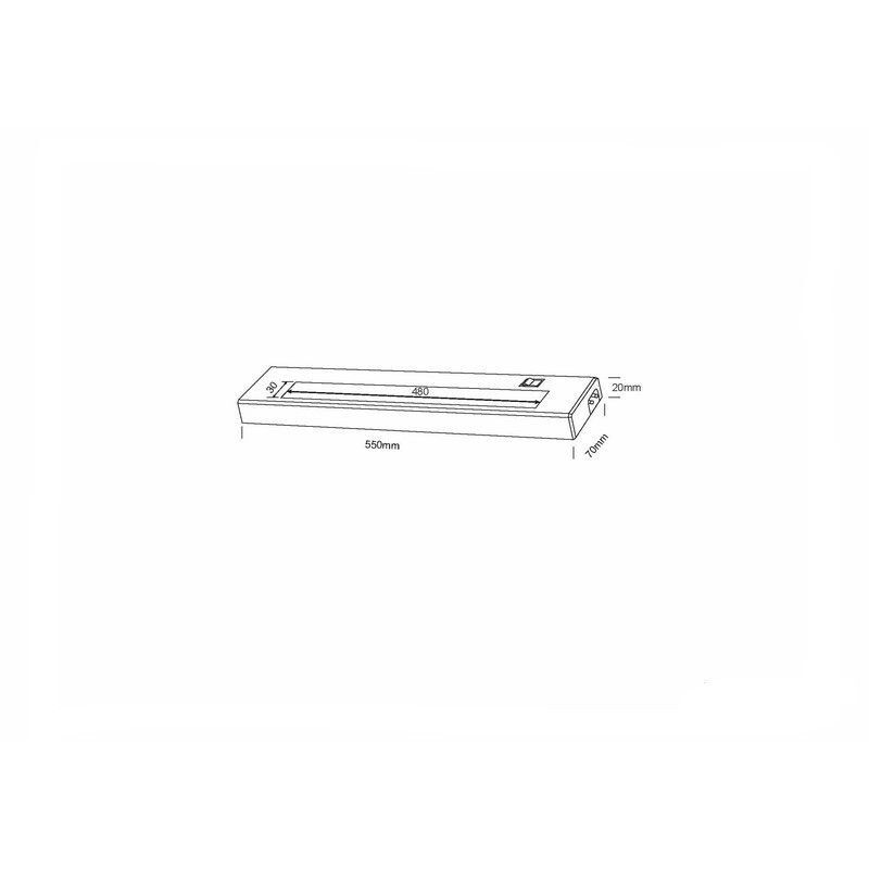 Product information Maximum wattage 7 Supply voltage 220-240V Number of lights 1 Number of Lumens 600 Product information Light colour 3000K (Warm white) Lampholder type LED integrated Lightsource type included Integrated LED Expected burning hours 30000 Light included Yes, integrated Width in cm 55 Weight in KG 0.55 Height in cm 2 Length in cm 7 Dimmable No Warranty 5 years IP classification IP20 (dustproof) Colour White Material Plastic With switch Yes With cord and plug No Area Kitchen Style Basic Switch type On/off switch on the product Article number Q12286
