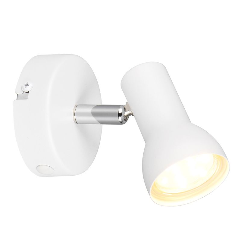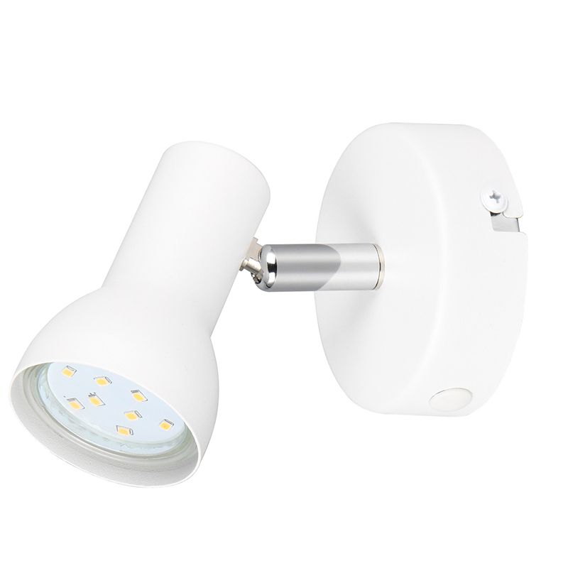 The white wall spotlight Sabrin has the style modern and is made of metal. This modern wall spotlight has a GU10 lamp holder and is supplied without a light source. The lamp can accommodate light sources with a maximum power of 5 watts.